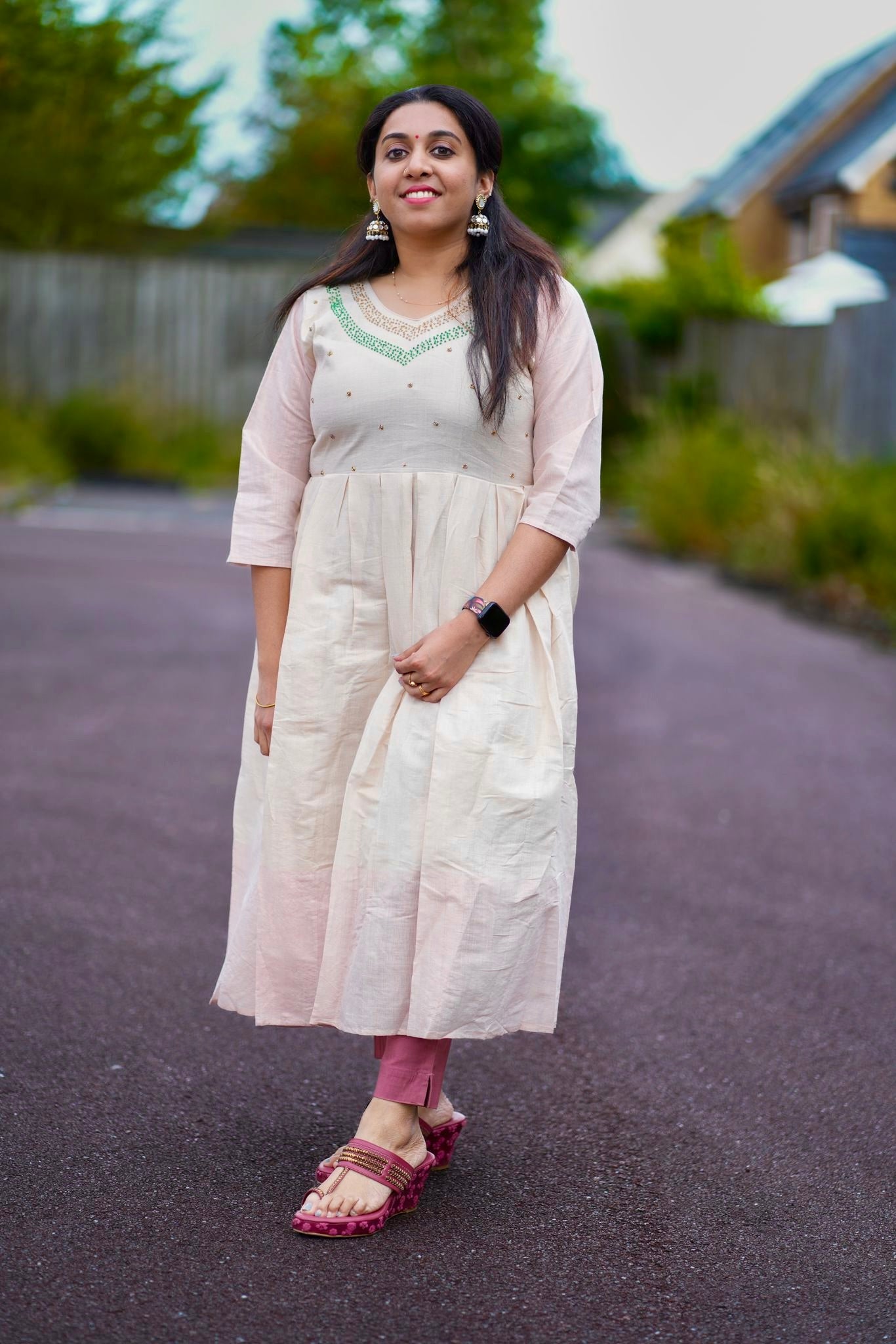 This Kasavu frock style Kurti is perfect for adding a touch of elegance to any outfit. Made with high-quality and breathable fabric, it offers a comfortable fit for everyday wear. The frock style adds a unique twist to the classic Kurti design, making it a versatile and stylish addition to any wardrobe.